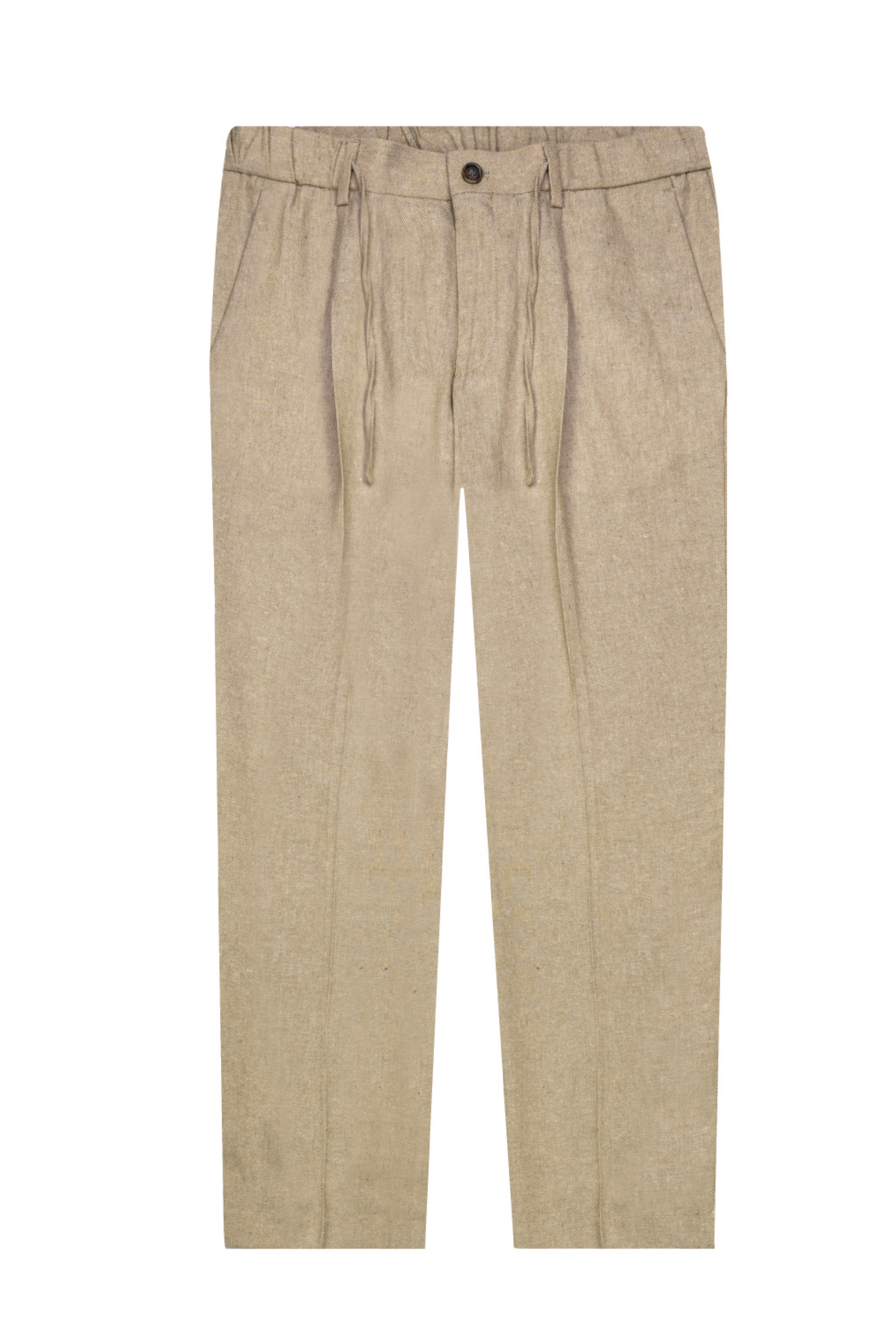 Plain beige trousers made of lincot fabric (55% linen, 45% cotton), a natural combination that combines the freshness and breathability of linen with the softness and durability of cotton.