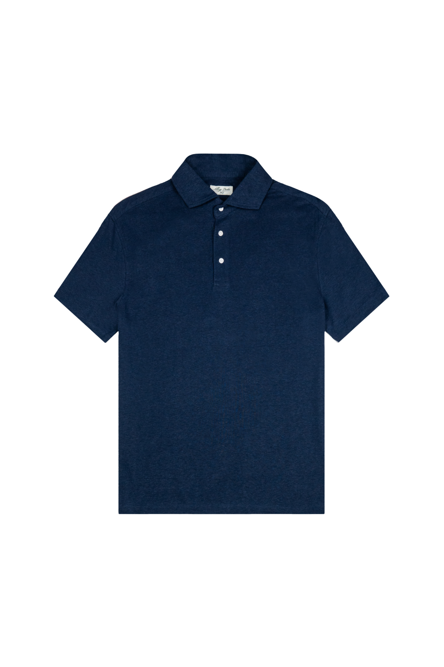 Solid navy blue polo shirt made of hemp jersey, a natural fabric made of 55% hemp and 45% cotton, combining strength, breathability and softness.