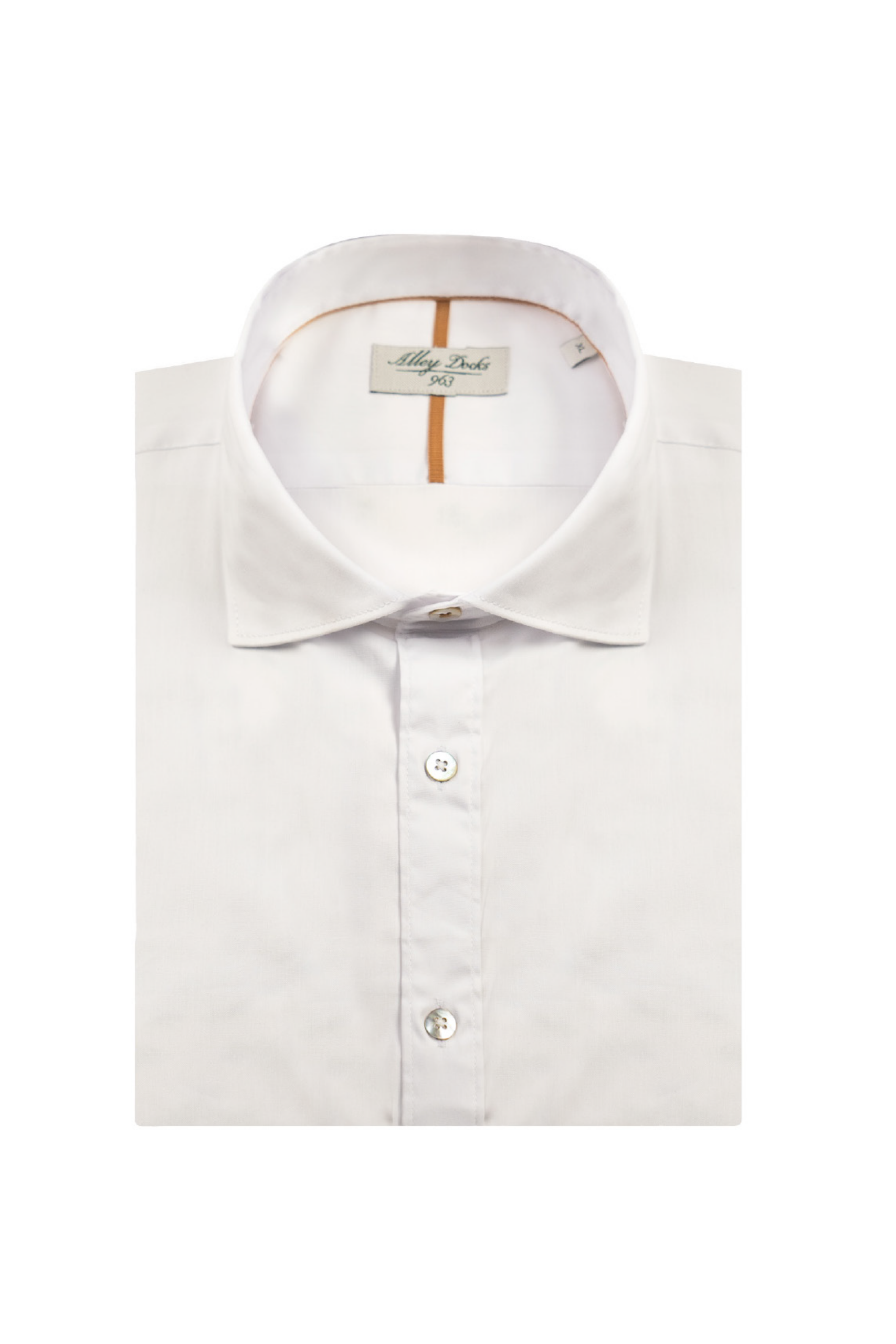 Camicia a maniche lunghe con collo alla francese, realizzata in 68% cotone 29% poliammide e 3% elastan, in tinta unita. Versatile e Raffinata.